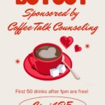 Sponsored by Coffee Talk Counseling, the first 50 drinks after 1pm are free!